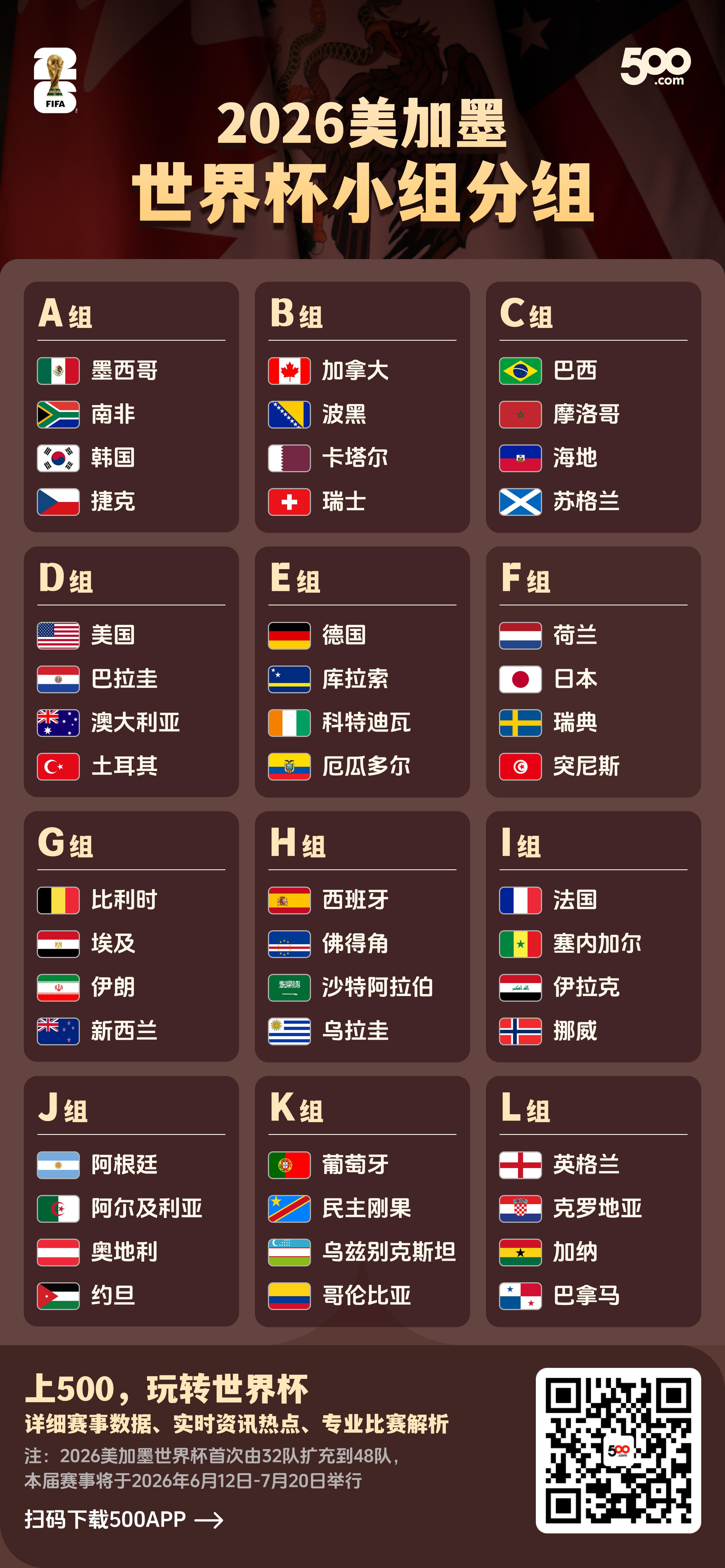 今年世界杯48支参赛球队已全部出炉,世界杯72天后将拉开帷幕!